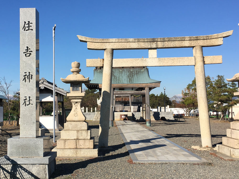 桑名は水運が盛んな土地であるため、正徳5(1715)年に海上安全の神である住吉神社を大坂から勧請した。揖斐川に面しているため、度々の水災や移転もあったが、境内には天明8(1788)年建立の常夜燈、文政10(1827)年建立の石造鳥居、明治28(1895)年建立の石造狛犬、昭和38(1963)年建立の有本芳詩碑、昭和49年建立の山口誓子句碑がある。毎年元旦には鳥居の間を昇る初日の出を拝む人で賑わう。